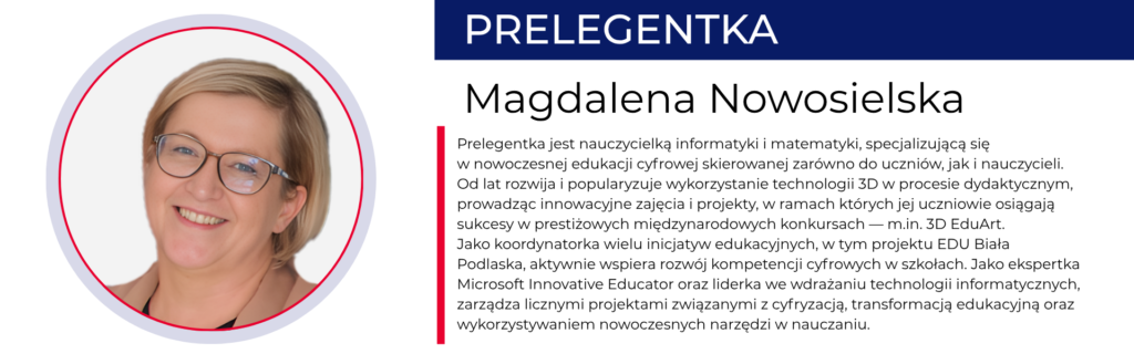 - Magdalena Nowosielska, Małgorzata Bierczyńska – Osuch, Beata Samojluk “Akceleratory Nauki i moduł Teach w Microsoft 365 – bezpieczna i świadoma transformacja edukacji.”